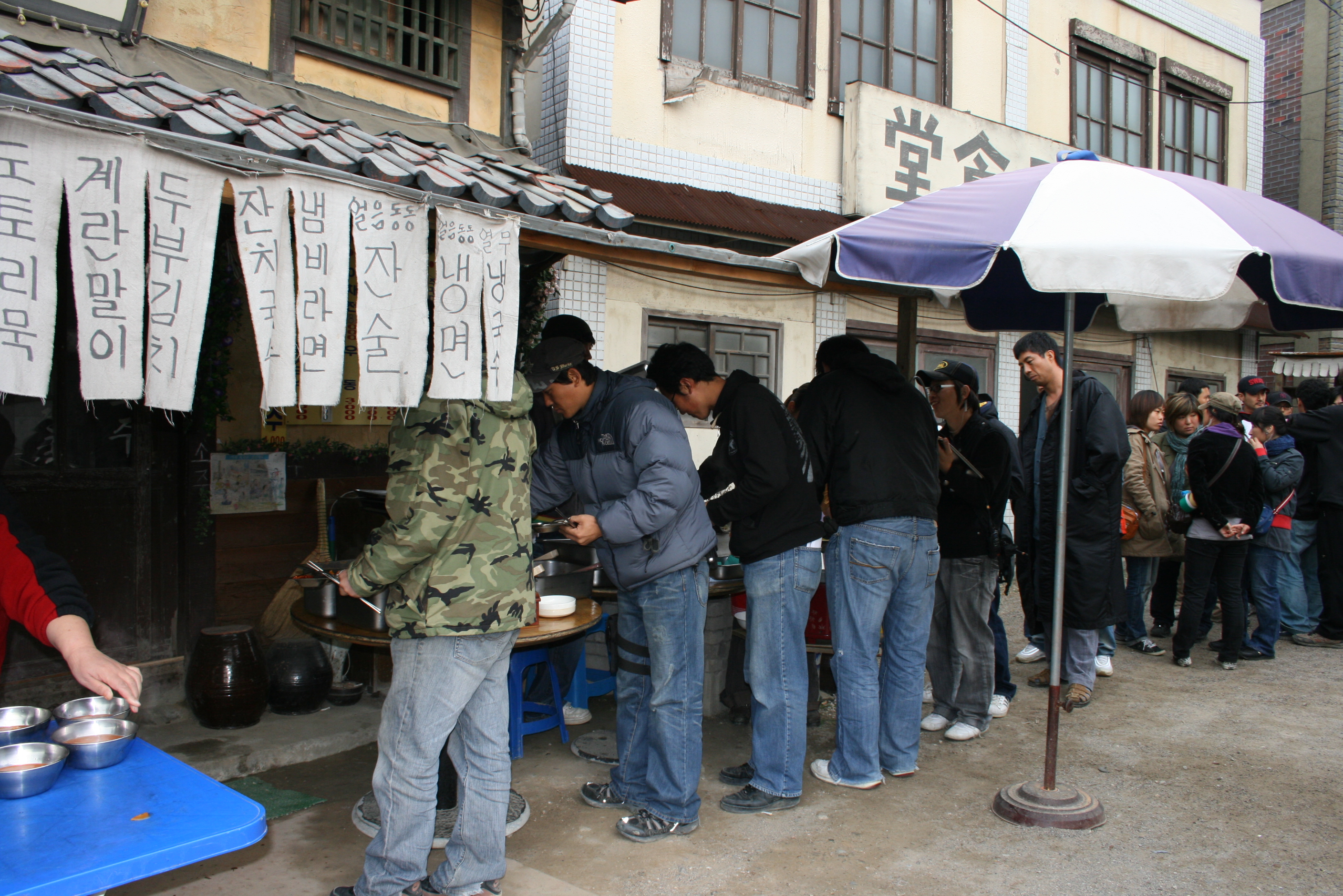 親しい友人でもある「家紋の危機」(2005)シリーズで知られるチョン・ヨンギ監督に招かれ、2007年、「ワンス・アポン・ア・タイム」(2008/日本未公開)の撮影に招かれた。植民地時代の韓国を舞台にしたアクション大作で、当時の街並を再現したプチョン・ファンタスティック・スタジオ(太秦映画村のようなところ)で撮影は行われた。スタッフは30~40名もいて、昼になると、セットの店にケータリングが用意され、ビュッフェのように、それぞれ好なだけ食べられる。かなり豪華で豊富なメニューに驚いた。このころは、まだ合理化が進んでいない時代であったが、和気藹々の雰囲気があった。