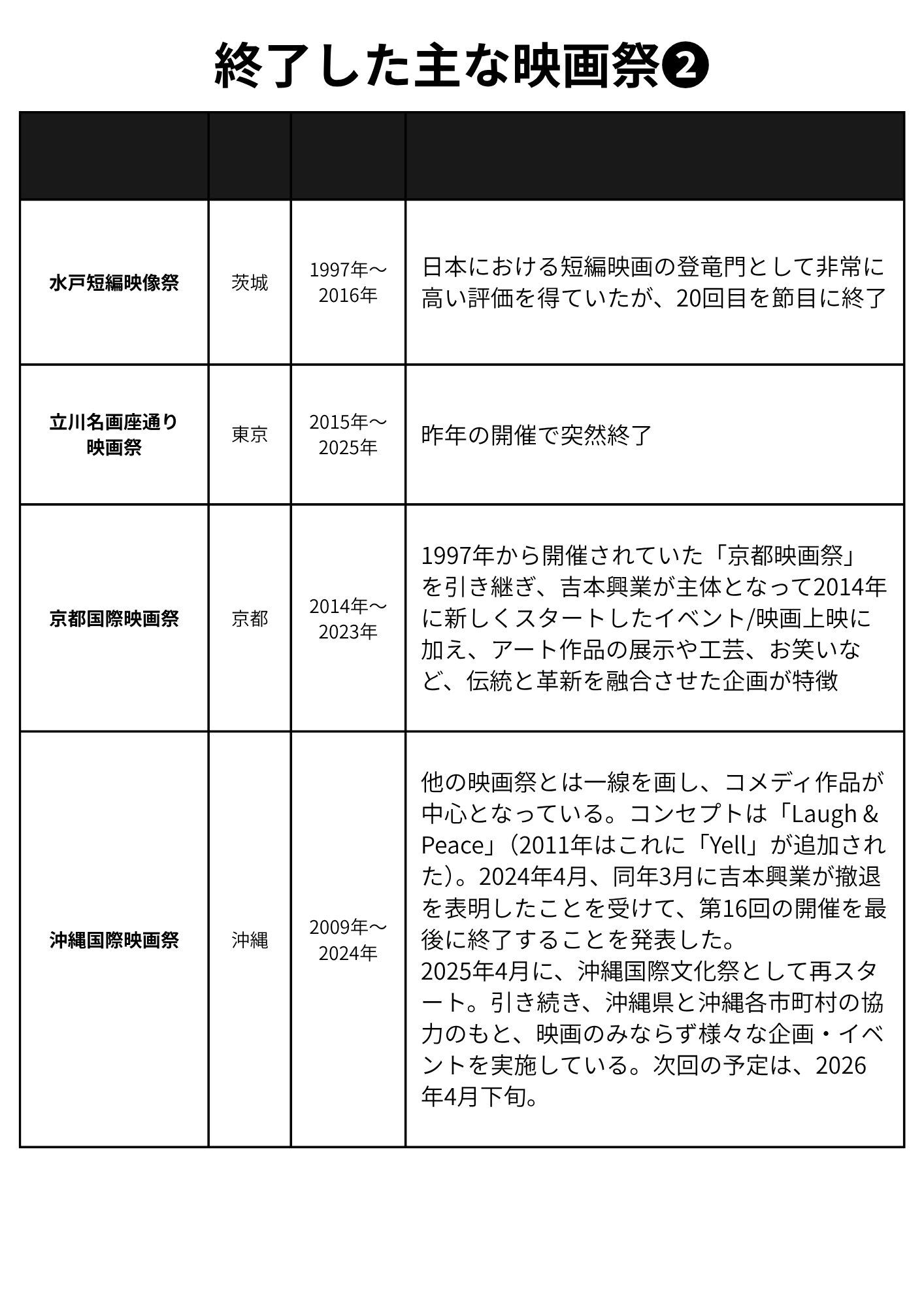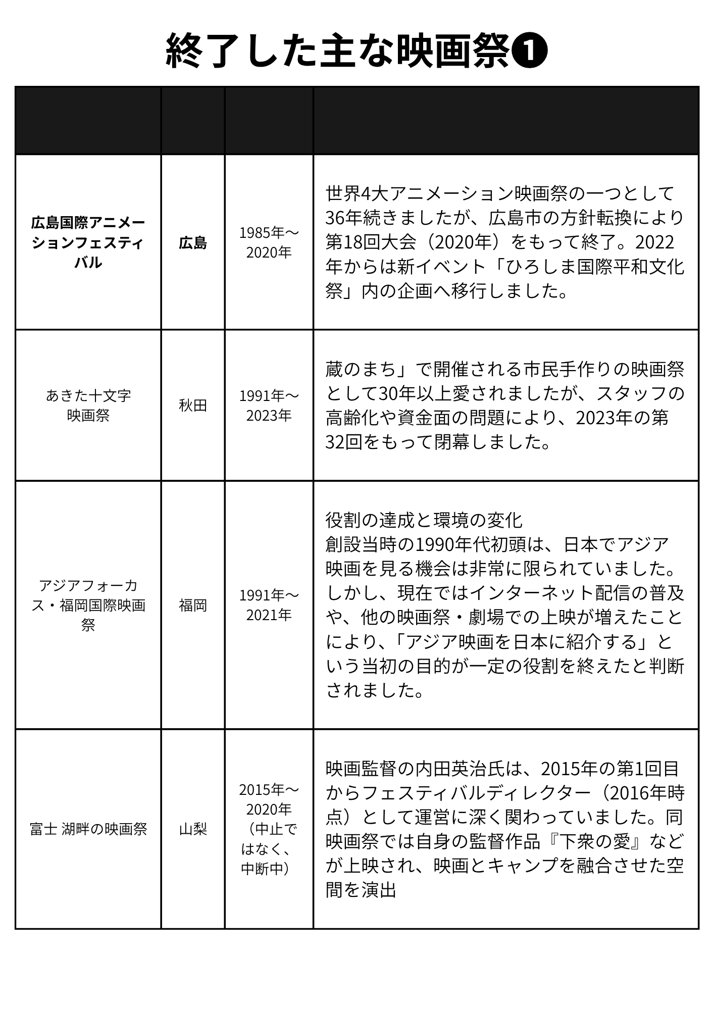 前述した映画祭が終了する3つの理由以外に、自治体の長の方針転換というのもありますね。特に選挙で首長が変わった時は危ない。